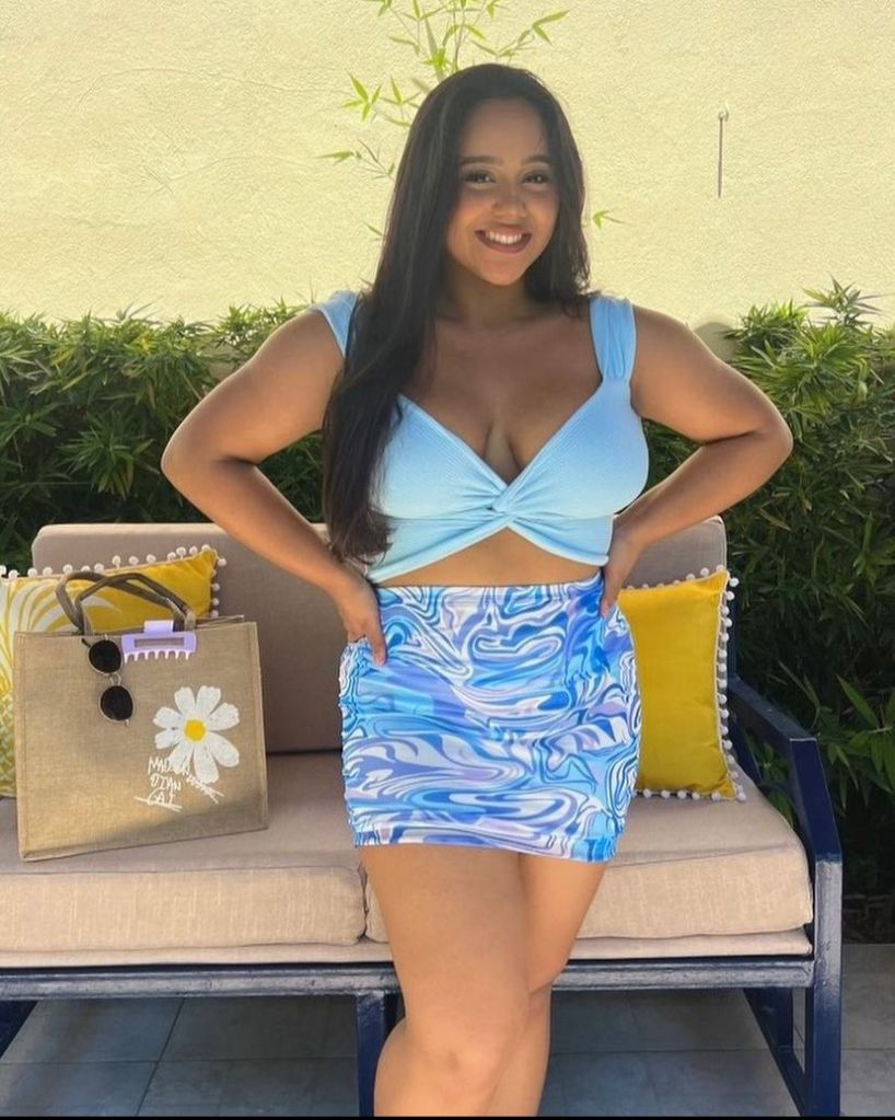 Traje de Baño / Size M / $1,200 Tote Bag / $850 Kimono Playero / $700Traje de baño dos piezas / Size S / $995Traje de baño dos piezas / Size M / $1,050Top mariposa / Size S / $700 Falda estampada de marmol / Size M / $700